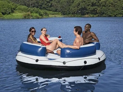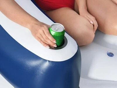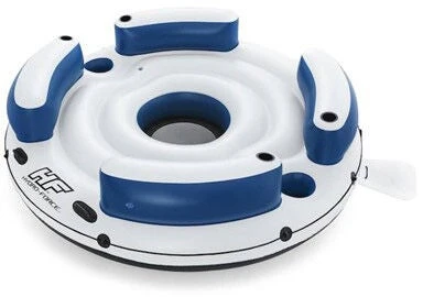 Oppblåsbar, hvit The Hydro-Force™ Lazy Dayz™ flytemadrass fra Bestway med slitesterkt materiale. Den har et godt grep og fire koppholdere. Flytemadrassen har to oppbevaringsrom, fire komfortable ryggstøtter, en åpning i midten, et gripevennlig, sikkert tau rundt og to slitesterke håndtak. Perfekt for stranden og bassenget. – Gripevennlig, sikkert tau rundt – To slitesterke håndtak – CE-merket – Skal brukes under oppsyn av en voksen – Anbefalt alder: fra 4 år – 93,5 % PVC, 2 % PP-plast, 4,5 % annet materiale