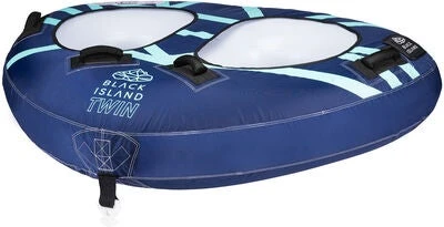 Towable tube fra Black Island med fire håndtak. Perfekt for masser av morsomme vanneventyr. – CE-merket. – Maksimalt antall brukere: 2. – Anbefalt alder: fra 10 år. – PVC, nylon.