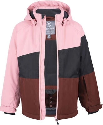 Funksjonell skijakke i sporty design, fra Color Kids. Den har ribbekanter ved slutten av ermene for å beskytte mot kalde vinder og justerbare borrelåser for optimal passform. Skijakken har en avtagbar hette og en lomme til småting på det ene ermet. Perfekt for alle vinteraktiviteter. – Vannsøyle: 10000 mm. – 100 % polyester.