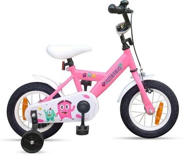 Fargerik, rosa Monster sykkel av høy kvalitet fra Pinepeak med avtagbare støttehjul. Den har en håndbrems på forhjulet og en sykkelklokke foran. Sykkelen har en synlig refleks, en heldekkende kjedebeskyttelse, et justerbart sete og ett gir. – Ett gir– 12 tommer. – Maksimal vekt: 20 kg. – Mål: H 69 x B 46 x L 90 cm. – Anbefalt alder: fra 2 til 4 år. – 80 % metall, 10 % gummi, 10 % plast.