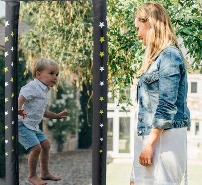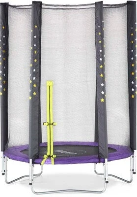 Lilla, svart trampoline fra Plum med et sikkerhetsnett. – Maksimal vekt: 40.0 kg– Undersøk trampolinen regelmessig for å sikre at den er i god stand og riktig montert. Bytt ut ødelagte nett og rammebeskyttelse umiddelbart– Anbefalt alder: Fra 3 år