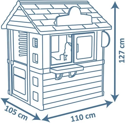 Blå Sweety Corner lekestue fra Smoby med en dør. Den er designet i Frankrike. Den har to vinduer og morsomme tilbehør. – Lett å montere– CE-merket– Anbefalt alder: Fra 2 år