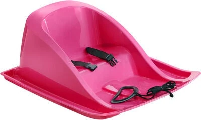 Rosa Baby slede fra SportMe med en snor med et håndtak. Den har et belte med en låseknapp for ekstra sikkerhet og komfort. Perfekt for de mindre barna i akebakken. – CE-merket. – Maksimal vekt: 20 kg. – Anbefalt alder: fra nyfødt. – HDPE-plast.