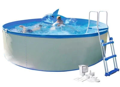 Et rundt utendørsbasseng fra Swim & Fun, med medfølgende skimmer. Kreta-bassenget er et godt valg for deg som vil kjøpe det første utendørsbassenget til barna. Det har en stabil stålvegg, og takler de mindre barnas vannlek i flere sesonger. Dybden er 90 cm, og egner seg for barn fra 5 år og oppover. Her når de små bunnen, samtidig som det er dypt nok for de fleste vannleker. Akkurat som større bassenger, kan dette bassenget stå ute året rundt, men selvsagt må du forberede det for vinteroppbevaring. Med bassenget kommer også et skimmersett med pakninger, stoser, adaptere for støvsugere og skimmerkurv. Skimmeren hjelper til å holde et godt miljø i vannet, og filtrerer bort støv og skitt. – Diameter: 3,5 meter.- Dybde 90 cm. – Volum: 8150 liter.- Leveres med skimmer og stige. – Ramme i galvanisert stål, behandlet for å kunne takle det nordiske klimaet.- Kan stå ute året rundt.Anbefalt alder: 5 år +.OBS! Bør kompletteres med bunnduk (kjøpes separat). Råd og informasjon om vedlikehold, finner du på produsentens hjemmeside.