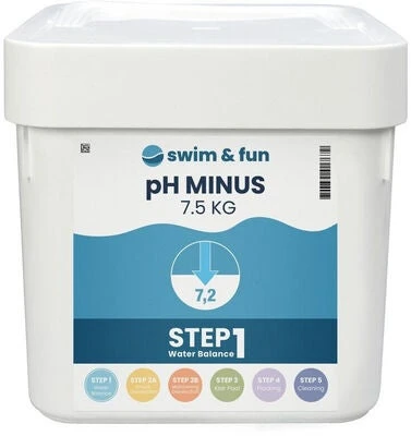 Høytytende pH-minus fra Swim & Fun som holder vannet friskt og rent. – Oppbevares helst mørkt og svalt