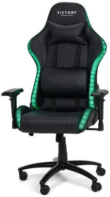 Gamingstol fra Victory med et stilrent design. Den har kul RGB-belysning og en liten fjernkontroll. Gamingstolen har et ergonomisk design, en fellbar ryggstøtte og en justerbar høyde. – Stolen må kobles til USB for å lyse opp. – Gamingstolens LED-funksjon lades via en USB-kabel som du f.eks. kan kobles til en strømbank for enkel lading (USB-kabel er inkludert). – Maksimal vekt: 180 kg. – Stolen har klasse 4 gassheis. – Anbefalt alder: fra 8 år. – 40 % metall, 40 % skum, 10 % skinn, 10 % nylon.
